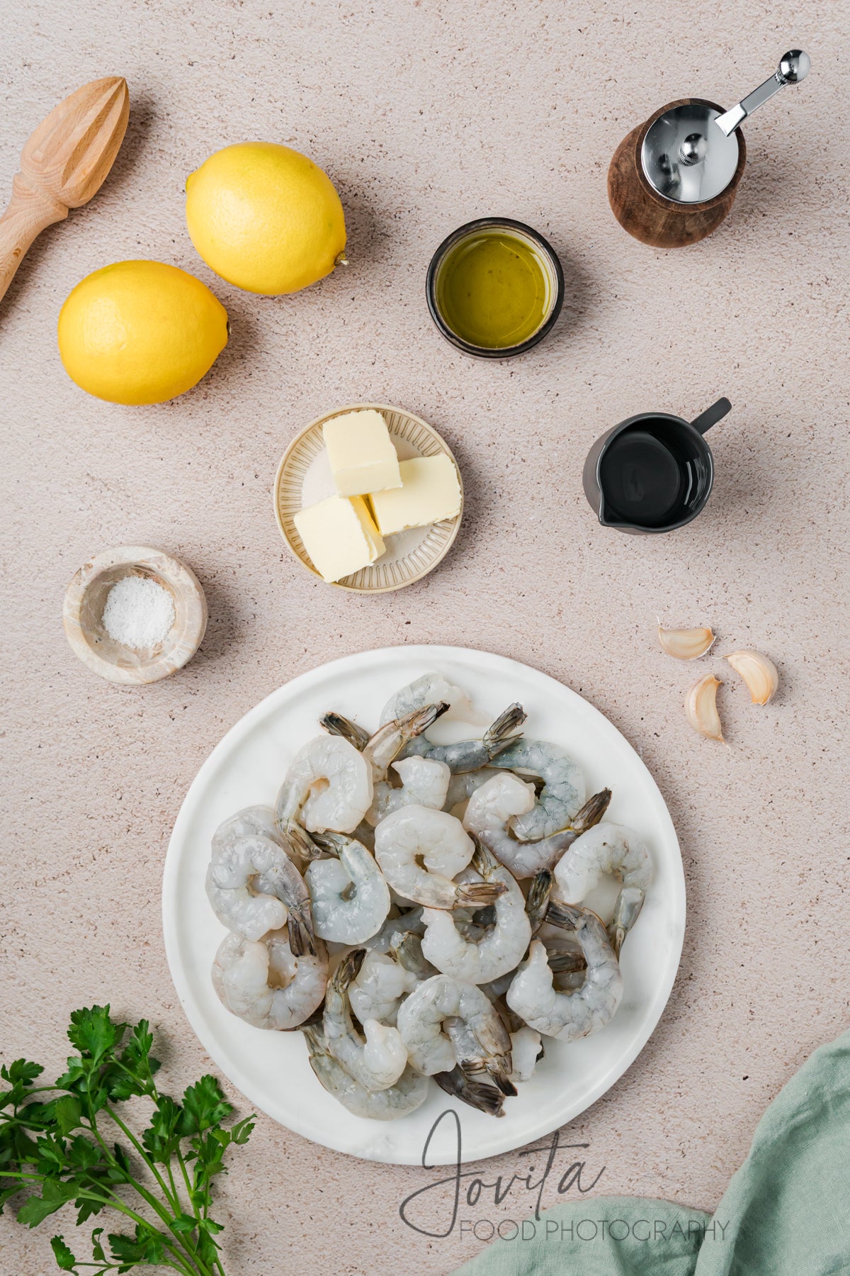 Featured ingredients: shrimp, lemon, olive oil, butter, garlic, broth, parsley.